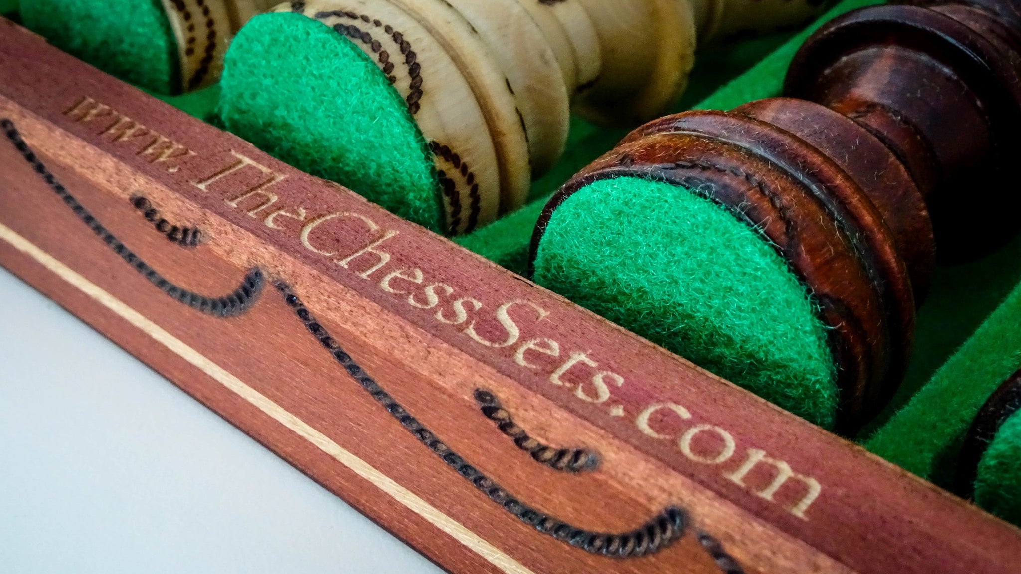 La foto de la ilustración muestra un ejemplo de inscripción realizada sobre un estuche de ajedrez del modelo Ambassador (nº de cat. CH128).