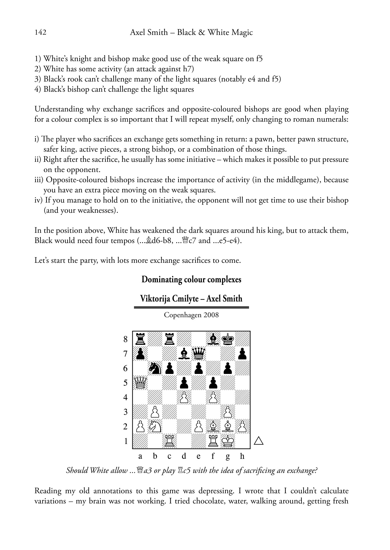 En estas páginas, el galardonado autor desglosa los complejos de color en varios subtemas como bloqueos, alfiles de colores opuestos y sacrificios de cambio, con ejercicios cuidadosamente elegidos para poner a prueba y reforzar los nuevos conocimientos del lector. Utilice Black & White Magic para mejorar su fuerza ajedrecística.