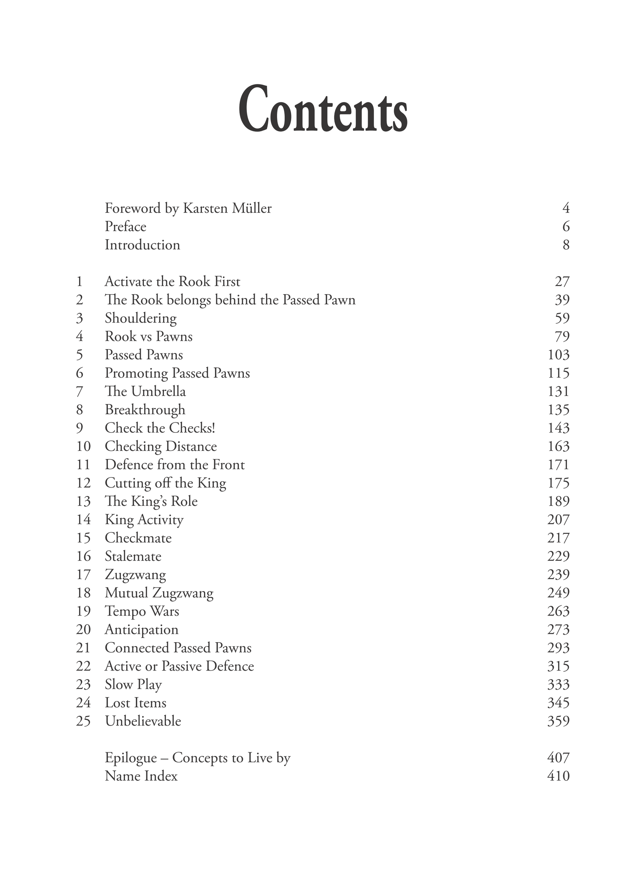 Conceptual Rook Endgames va en una dirección diferente. Centrado en dos docenas de conceptos importantes, el libro explica los mecanismos de los finales de torres de una manera novedosa, sentando las bases con ejemplos sencillos, que también se pueden ver en los ejemplos más complicados. Los finales de torres seguirán siendo ricos y sorprendentes, como lo son para los grandes, pero con este libro, su comprensión de los mismos se disparará.