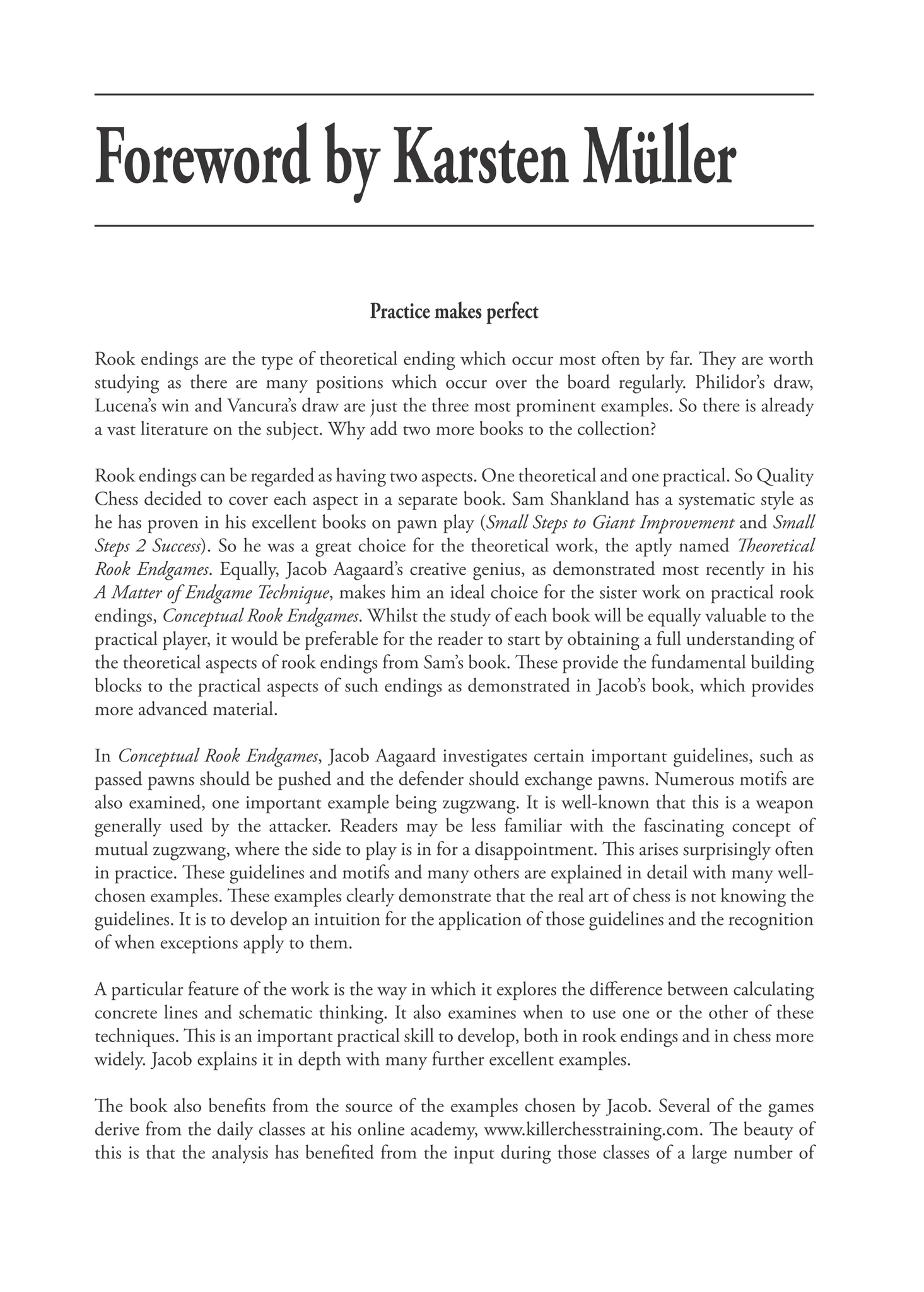 El gran maestro Jacob Aagaard es el escritor de ajedrez con más talento de su generación. Ganó el Campeonato Británico en 2007, pero es más conocido por sus libros galardonados y su trabajo con alumnos que han ganado campeonatos de club, regionales, estatales, nacionales, continentales y mundiales, así como medallas de oro en Olimpiadas (por tableros y por equipos), la Copa del Mundo y el Torneo de Candidatos.