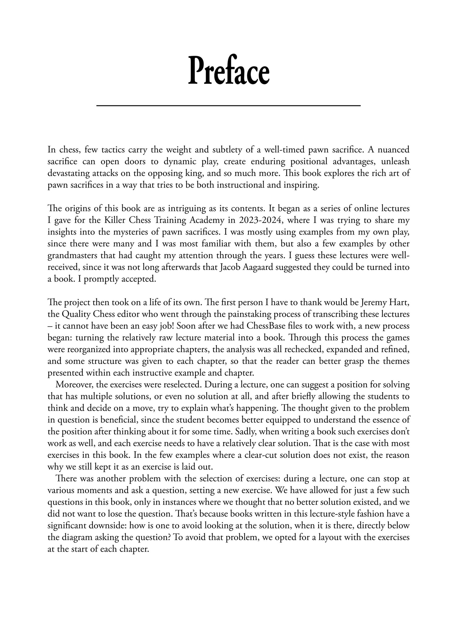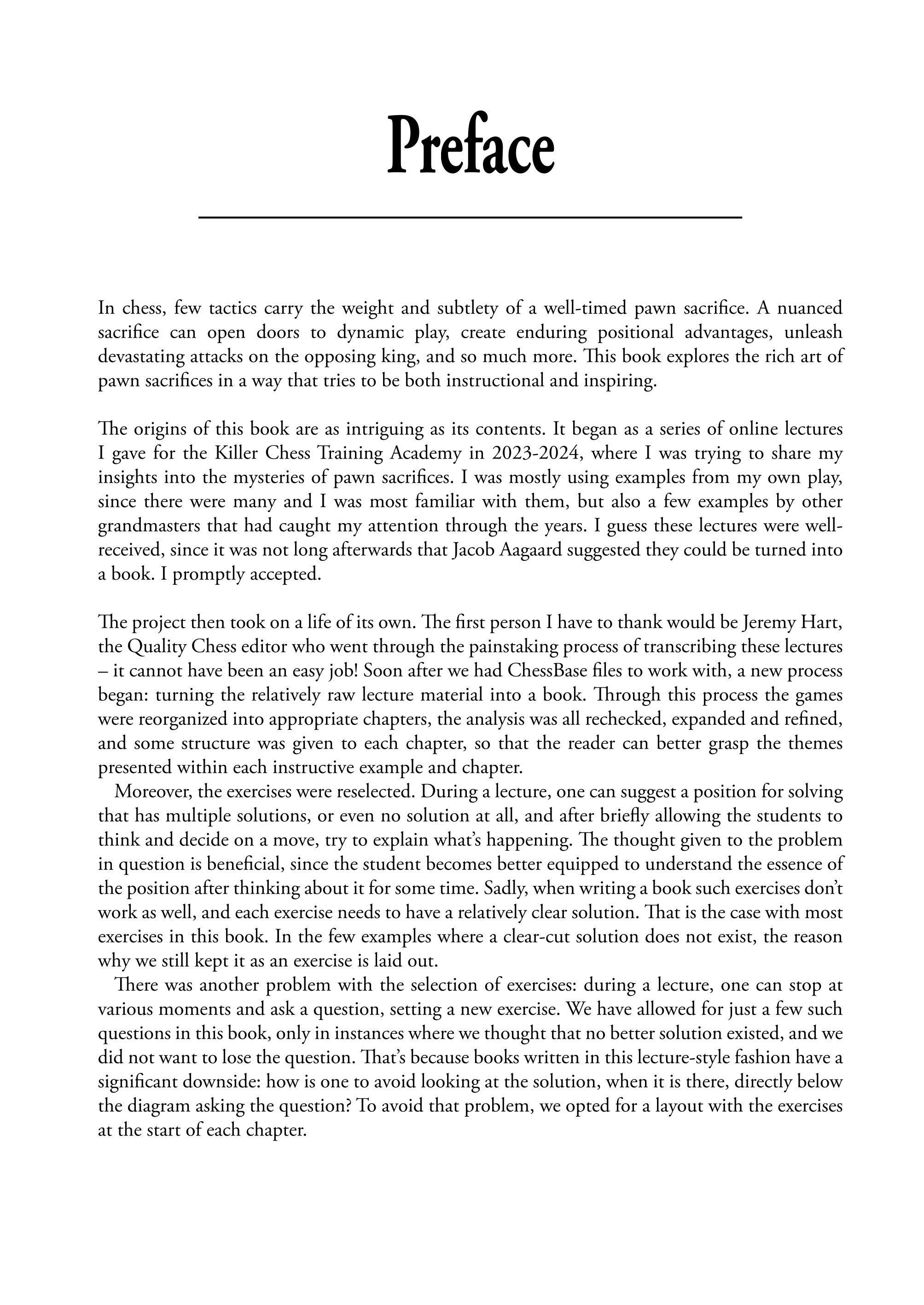 Powerhouse Pawn Sacrifices contiene todo lo que necesitas para dominar esta área crucial del ajedrez. Además de cubrir sacrificios dinámicos y a largo plazo, el gran maestro Ivan Cheparinov también analiza los sacrificios de peones que surgen en variaciones específicas de la apertura, conectando las diferentes fases del juego y compartiendo valiosos conocimientos que se pueden transferir a otros escenarios.