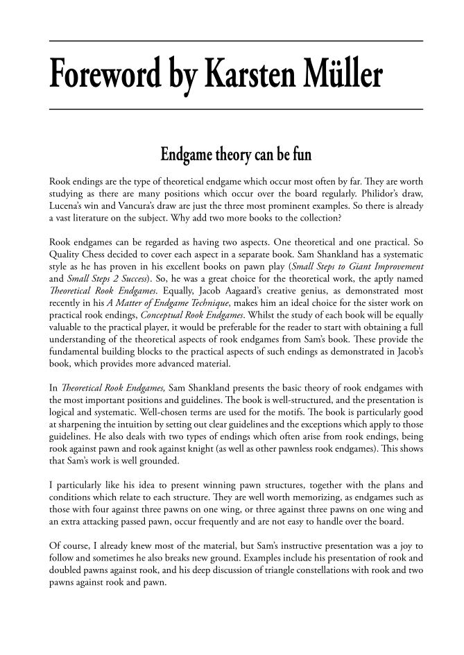 El volumen hermano, Conceptual Rook Endgames, de Jacob Aagaard, muestra cómo los conocimientos teóricos mostrados en este libro se utilizan en el juego práctico avanzado.