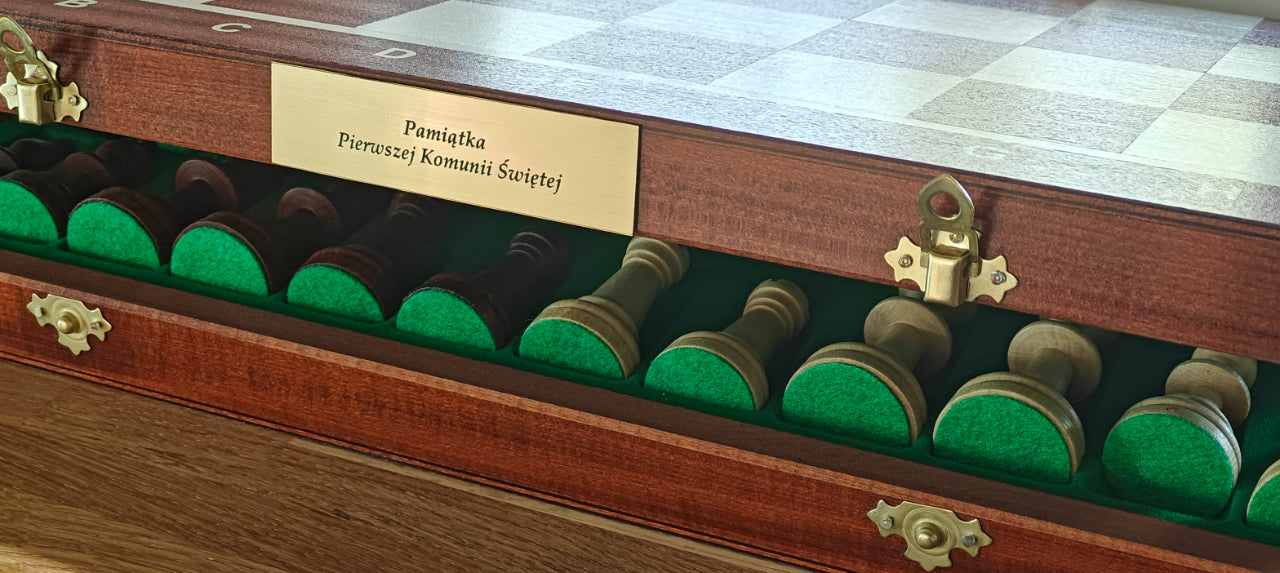 <span style="font-size:16px;">Si lo desea, ofrecemos un servicio de grabado en la pared interior de la caja de ajedrez o del campo de ajedrez. Si elige un campo de ajedrez, especifique en qué campo desea que se realice el grabado (el grabado en los campos A1 o H8 queda mejor). <strong>Grabamos inscripciones, logotipos, gráficos, etc. enviados por el cliente.</strong><br />.