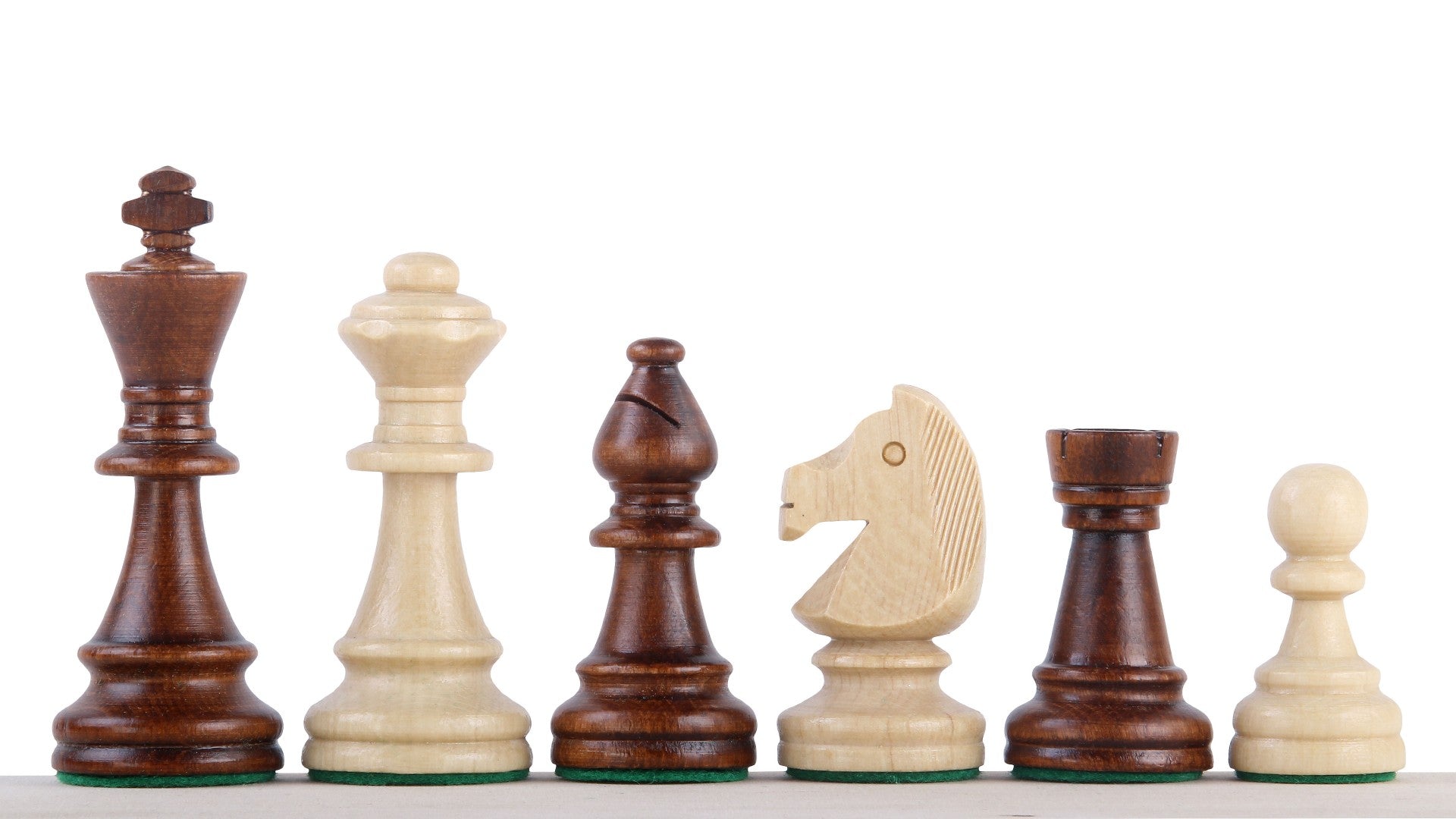 Están hechas de madera de carpe y teñidas para darles un acabado ligeramente rústico. Las figuras están cuidadosamente acabadas, lastradas y forradas de fieltro por debajo, lo que las hace cómodas de sujetar y suaves para deslizarse por el tablero de ajedrez.
