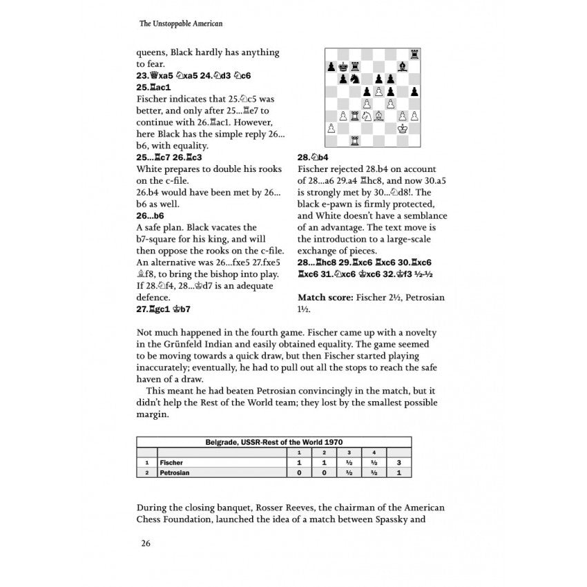 Jan Timman narra la historia completa de la sensacional carrera de Fischer y ofrece una nueva perspectiva de las partidas. Las anotaciones están escritas con el estilo lúcido característico del autor, una feliz mezcla de información contextual colorida y explicaciones concisas y cristalinas.